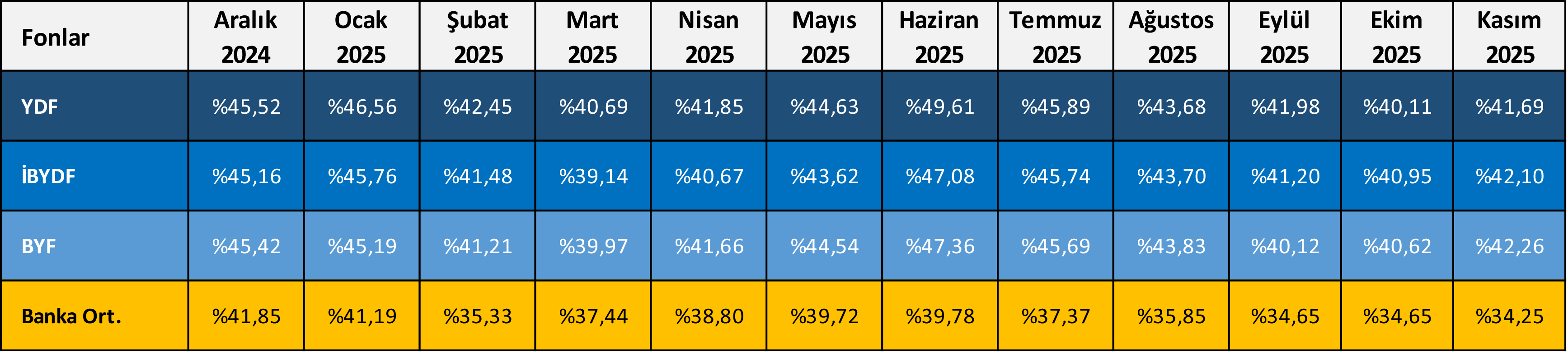 Tabloda belirtilen oranlar, yıllık net getiri oranlarını ifade etmektedir.